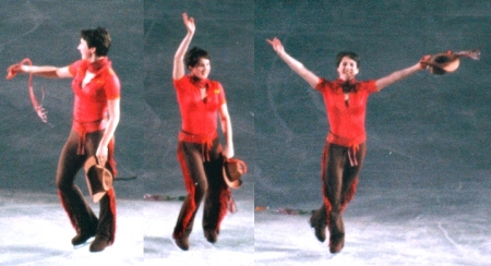 | 昨日はもう、あまりに嬉しくて、ついついオーバーヒート気味に書きまくってしまった。こんなに長い文章、誰が読んでくれるんだろう、と思いつつ、今日もまた。 ほんとにほんとの観戦最終日。奇跡のように手に入ったチケットを持ち、エムウェーブに向かう。今日は、エキシビションが行われる日だ。 長らくお世話になったホテルをチェックアウトし、長野駅のコインロッカーに荷物を預けてから、バス乗り場に向かう。ところが、いつもの乗り場にはバスも係員もいない。時間が早いのでシャトルバスは運行していないのだろうかと、昨日と同じく路線バスの停留所で待つ。 駅周辺には、なぜかものすごい数の警察関係者が出ていて、警備に当たっている。何か催し物でもあるのだろうか。いくら一番人気のエキシビションだからといって、フィギュア観戦客の整理のためだけに、こんな大警備線を張るはずがない。ベンチに座りぼーっとそんなことを考えていると、道路を挟んだ向こう側に、見慣れた長野電鉄のバスがずらりと並んでいるのが目に入った。 ……なんであんなに、いやもしかして、と急いで近くの階段を駆け登る。エムウェーブ行きのバスの案内看板が立っていて、まぎれもなくさっき見たバスのたまっている方向を指している。この看板は毎日見ていたが、いつも同じ場所なので今日は見過ごしていた。危うく、路線バスの発車まで1時間近く待つところだった。この日だけ発着場所が変わったなら、注意書きでもしてくれればいいのに、と思いつつ、道路にかかった歩道橋を渡り、バスに乗り込む。 エムウェーブでの到着も、いつもと違う場所だった。地下スロープをくぐり、ダフ屋をやり過ごして入口に向かう。「持ち物検査を実施しておりまーす。カバンを開けてお入りくださーい」という係員の声が届く。そして、駅周辺と同じく、群がるほどの警備員の数。やっぱりエキシビションのせいか、確かにこれほど全国から人が集まるのはそうないことだからこれぐらい厳重にしているのかも、と勝手に解釈したが、真相は帰りの長野駅で明らかになる。 先にその話をすると……エキシビションを見終えた僕は、長野駅で人が大勢集まっているのに出くわした。誰かを待っている様子から、選手がやってくるのだろうと思った。しばらく待っていると、歓声が上がる。誰だろう、ヤグディンか、はたまたスルツカヤか。いろいろと頭に浮かばせていたが、なんと、皇太子・皇太子妃の二人だった。 だから、だ。だから朝からあんなに厳重な警備だったのだ、とようやく知る。しかし、皇室に特に興味のない僕は落胆し、帰路に着いた。せっかく選手が来るのかと寒いのを我慢して待っていたというのに、という話。 とにかくこの時点では、そんなことは全く知らなかったわけで……カバンを開け、中に入る。実は、秘かに持ってきていたビデオカメラを見とがめられるかと少しヒヤヒヤしていたのだが、何のことはなく通過する。さらに金属探知器のゲートもくぐり、席へと向かう。 これまで毎日、南側に位置する席に座っていた。そこはリンクの長手方向を左右に見る場所で、審判席が並ぶ北席の対面になる。しかし今日だけは東側の席で、ここからだとリンクの逆側に選手がいる時は遠く離れてしまい、あまりいい席ではない。しかしそんなことは、今日エキシビションを見られるという幸運に比べるべくもない。会場の雰囲気を味わえるだけでも、充分すぎる。リンクが見える位置まで来ると、意外にも選手達が滑っているのが見えた。今日は公開練習はないかと思っていた。席に座ってしばらく見ていると、なんとスルツカヤ選手が出てきた。オリンピックでも聞いたあのポップなメロディーに乗り、カウガールの振り付けを踊っている。もうたまらん、ってぐらい可愛いのだ、これが。 スルツカヤが練習を終えて外に出るのを見計らい、出入り口付近に移動して写真を撮る。と、今度はヤグディン選手までが出てきた。昨日の練習には現れなかったが、今日は軽くジャンプやステップを練習していた。そして帰り際にはまた席を移動して見送る。隣にいた女性ファン二人が声を揃えてロシア語で何か叫んだ。しかし、つれなくヤグディンは去ってしまう。「ヤグ、つめたーい」などと言いながらも、姿を見られた喜びに不満な様子ではなさそうだ。 午後2時、待ちかねたエキシビション演技がはじまる。まずはオープニングとして参加各国の大きな国旗を持ったスケーター達が現れたあと、日本人選手としてアイスダンスの有川・宮本ペアと、世界ジュニア選手権で優勝した高橋選手が演技を行った。 その後は、各種目ごとに5位になった選手から順に、上位選手達の演技が続く。僕が昨日の練習で気に入った中国のチン・パン選手が出てきたが、昨日と違って席が遠いため顔がよく見えない。そしてもちろん、女子シングルの恩田選手も登場。大きな拍手を浴びる。ストロング・ジャンパーとし