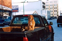 食事のあと、まずは駐車場へ行く。昨晩オーロラを見に行った時の荷物が、ほとんどそのままになっていたからだ。車内を片付け、荷物を部屋に戻したあと、カメラを持って市内に出た。昨日壊れたレリーズの破片が中に残っていて、これを取り除いてもらわないといけない。ホテルのフロントでカメラ屋の場所を聞き、そこまで歩いた。店はすぐに見つかった。中に入ると女性の店員が一人いて、修理したい旨を告げたが、ここでは修理ができず、カメラを別の場所に送る必要があると言われた。あきらめて引き返す。