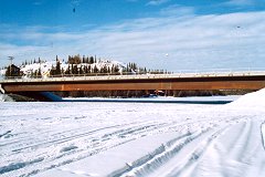もうこれでおしまいとホテルに近付いたところで、車の写真を撮っていないことを思い出した。昨夜、オーロラを見に行った方向に車を走らせた。イエローナイフ・リバーで車を停め、川の風景を写真に収めたあと、車の写真も撮った。