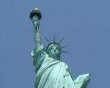 長い行列に並び、フェリーに乗り込む。3階の屋外席は人でぱんぱんに溢れていた。動き出し、だんだん近づいていくと、暑いくらいに晴れた天気のなかで、くっきりとその緑白色が浮かび上がる。島に降り立ち、像の足下で写真を撮った。後ろ側に回ってみると、後頭部がマヌケなことや、実は右足がつま先立ちになっていることなどを発見した。