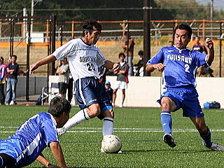 | 前半終盤にG到着。 西湘は磯崎の突破などの波状攻撃で藤沢ゴールに迫っている。しかし、ゴールは奪えずにハーフタイム。スコアは0対1で負けているとのこと!!(???)しかも、GKは吉野負傷で応援の佐藤と交代していた。 後半も宮下のゲームメークで優位に展開し、4分、磯崎がフリーでシュートを放つも決められない。しかし、後半11分、磯崎がシュート体制から強引に宮下へ繋ぎ、宮下がこれを決めて同点とする。その後、怪我を抱える山口(明)に代わり、新婚休養明けの重田が交代出場する。全国経験者だけあって、スペースへの良い球出しをする。そして23分、磯崎が戻したボールを石塚がDF待望の逆転弾を決める。その後の突き放すチャンスは得点を奪えなかったものの、試合終盤は宮下のリスクを伴わない時間を使うプレー等もあり、このままタイムアップとなる。 全員で勝ち取った勝利で2連覇達成です!! | |||||||||||||||||||||||||||||||||||||||||||||||||||||||||||||||||||||||||||||||||
