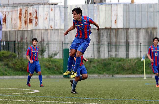 | 竹田の落としから綺麗な形で先取点を決めた田丸 |