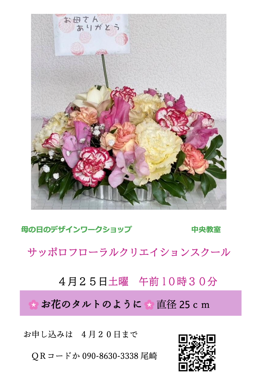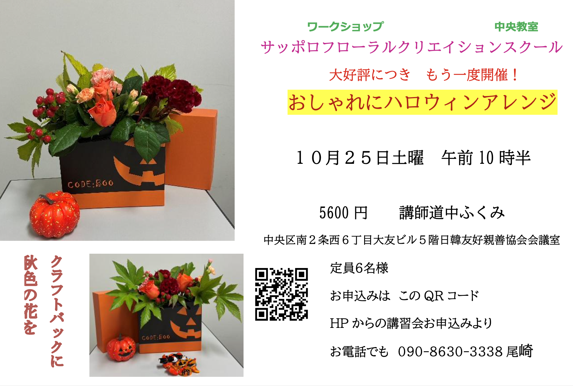 2018年10月1日 対象・・お花に興味のある方ならどなたでも 申込・・10/20までにお電話・メールで ご住所・電話番号・お名前をお知らせください おってご案内させていただきます。 尾崎 TEL: 011-210-0310 Eメール: Sfcyy1988@asahine.jp ![]() |