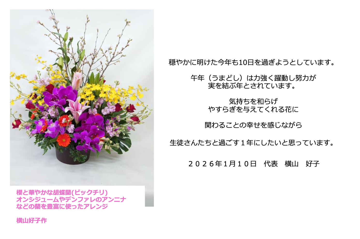 2023年1月11日 令和5年、大寒を迎えるころ、冷え込みが一段ときびしくなってまいりましたが、いかがお過ごしでしょうか?