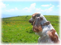 雲に乗って空を飛んでいるみたい。 長門牧場の牧草の上での1枚。 結構高い場所なのだけど 2匹とも気持ちよさそうに風を受け 遠くを眺めていた。 |
