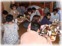 | 屋外でみんなで食べるごはんは 美味しいよネ。 |