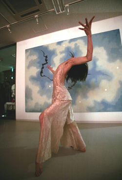 | ■2006.3.17 表層の冒険1芝章文展 オープニング・パフォーマンス ■展覧会企画:谷川渥氏 コンテンポラリーダンサー:関典子氏 |