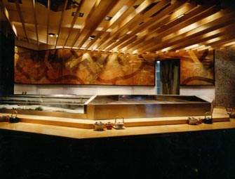 香港アートワーク「寿司バー」天明 - 700689 90×1000cm 和紙にアクリル、顔料、墨、金箔、1989年制作