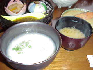 コーヒーコーナーと朝ご飯のおかゆ