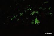 これと同じ種類ではないと思いますが、時々、落ちている枝が光っていたり、以前は登山道に撒いてあった木のチップが光っていたこともありました。他にススキの枯れ葉やヒカゲヘゴの落ち葉(?)の一部が光っていたこともありました。前述のホシノヒカリタケ(仮称)が生えていた倒木が光っていたこともありました。