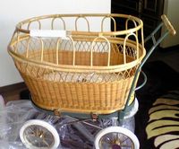 東京乳母車さんの「プスプス」です。 新品を買おうかどうか迷っていたところ東京乳母車さんから中古の入荷の お知らせをいただき即、購入。 現在は販売されていない色ですが、ベビが男の子だったので白よりいいかな〜と 思ってます。 中古ということで籐の部分が見事なアメ色!素敵です。 幌などもオプションでつけれるんですがプスプス仲間の友人に教えてもらって 自分好みの幌を製作予定です。 |