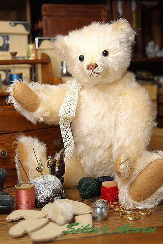私にしては珍しく大きめのテディベアです。 2月の終わりから3月にかけてのイベント展示のあと、ショップ販売予定です。