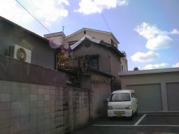 康成が通った銭湯「敷島湯」あと。昭和61年発行の「川端康成その人とふるさと」には、「現在も営業している」と書かれているが、もう廃業された。車の向こうが、銭湯の建物の一部。