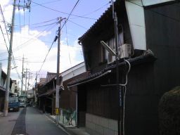「南清水町の通り」かつてこのあたりに芝居小屋があったそうで、康成が俳句によんでいる。「五月雨や湯に通ひ行く旅役者」(「川端康成その人とふるさと」54頁)