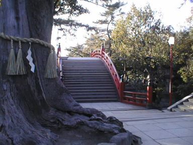 神社側から振り返ってみた「反橋」。ここを左に行ったところに文学碑がある。