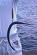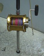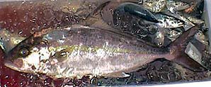 | 今回はジギングをやめて、ムロアジの泳がせでカンパチを狙った。タックルは全て パパズインでレンタルした。船は潤航丸。操船技術はパパさんのお墨付きだ。石積沖の100〜150メートルを攻めたが、釣友Yがサメを、俺が2.5キロのカンパチを揚げただけに終わった。チャーターなので時間延長は自由。1時間延長したが、港に戻った頃カンパチが食いだしたそうだ。チャーターしたら丸一日やったほうが良い。タックルがヘビーなので最初は巻き上げなどが大変に思ったが、少しずつ慣れていった。餌のムロアジは、ポイントに行く途中の港前で購入していく。15〜20センチ位で、鼻掛けにした。前日などは、この日使用した300号の錘でも底が取れなかったそうだ。黒潮の本流の中の海であり流れが速い。その為、この時期のジギングは200〜500グラムのジグを使う。外房や奄美の海と同じように考えて行かないように。 |