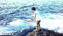 | 次回の釣行の為に島を廻ってきたが、堤防・磯とも良さそうな場所が沢山あった。11月頃から八丈小島の磯で、カンパチやキハダマグロが狙えるそうだ。個人的に興味のある観光名所は少なかったので、釣りが出来ない時は温泉に行くのがよさそうだと思った。寿司屋には予約を取って行ったほうが無難。入れない時がある。シマアジ・ハガツオ・オナガダイなど、あまりお目にかかれないものが多い。パパズインにはモモというアイドル犬が居るが、宿泊客をすぐに覚える。釣りから帰ってくると出迎えてくれる。他の宿の客が前の道を通ると吼えまくる。凄く可愛かった。ビールの自販機を修理してママさんにビールを頂いたり、朝カップルのバイクの押し掛けを手伝ったり、小さな思い出が沢山できた。釣り以外でもお薦めの宿である。 |