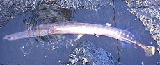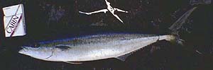 | 磯は台風の影響もあって、場所を限定された。名前は忘れたが、神湊港 から車で3分くらいの所。島の地磯の場所は、道路脇の入り口に白い杭が立ててあり、それに磯名が書いてある。今回の磯は少し高さがあるが、足場は良い。ポッパーからミノー、メタルジグとローテーションしながら攻めるが、なかなかヒットしない。釣友はナンヨウカイワリとダツを揚げている。そのうち俺のKTENブルーオーシャンに魚がアタックしてくるのが見えた。そしてヒット。13フィートのシーバスロッドを気持ち良く曲げてくれたのはツムブリだった。次のキャストで小型のカンパチが追ってきたが、これはヒットせず。この後しばらくは、エソが何尾かヒットしたのみ。釣友はヘラヤガラを揚げ、俺は再度ツムブリをヒットさせるがタモ入れ失敗。次の一投でまたもやカンパチが追ってくるが、これもヒットには至らなかった。ツムブリとカンパチはいっしょに居るみたいで、根際から出てくる。水温が高く、ダツがかなりの数浮いていた。磯に降りるには荷物をまとめ、最低片手を空けるように。タモ、クーラーは借りられる。 |