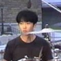 パワフルなドラムは、私の知り合いの中でもダントツ。 しかし、海援隊の曲となると、静かなものが多く、「ストレスが溜まった、つらかった」と後に告白された。 不思議に手拭鉢巻・Tシャツ・ジャージがよく似合う! 私とは「コババンド」でも一緒した。 |