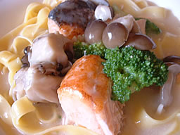 きしめんのようないでたちのフェットチーネは、見た目よりも伸びにくいのが特徴です。コテコテのクリームソースや濃いトマトソースと相性もバッチリ。
