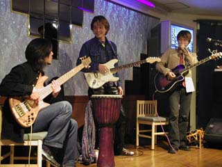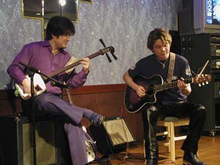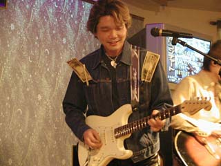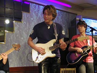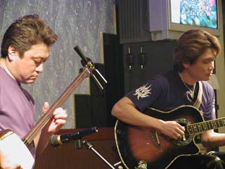 | 今度はお店のアコギで挑戦っ♪ | 三味線の弟弟子とは なんと同い年! ちょっと梅宮辰夫似かもぉ〜? |
