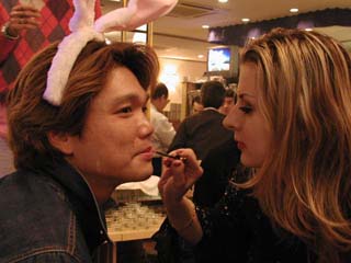 | ロシア人のお客様が 是非、sugiyan にメークをしたいと。。 さすが!誰にでも感じ良い? sugiyan! 勿論、快く OK! もしかしてその気あったんじゃなぁ〜いっ? お化粧って一度すると 病みつきになるらしいよぉ〜! 大丈夫??? |