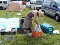 ![]() オヤジ、火を起こせるんかい? |