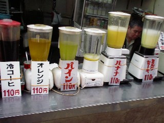 | ジュース屋さん これで商売成り立っているんだから 大したもの。 ミルクセーキを飲んだけど なんとも言えないオモチャぽい味でした。 |