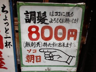 | さすが大阪!安いねぇ〜! 調髪って言い方がなんとも言えない.. |