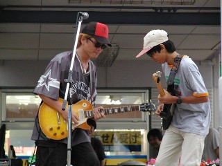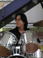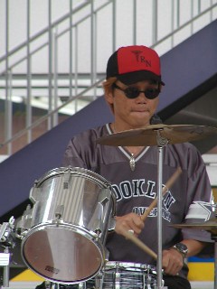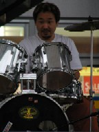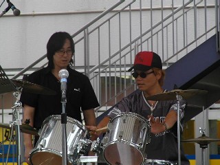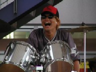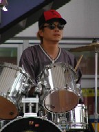 | あれっ? ギターを弾く時は 口をあけてるのに ドラムの時は口を思いっきり 閉じるのぉ〜? どぉ〜してぇ〜? |
