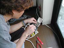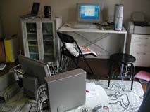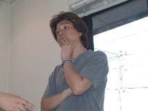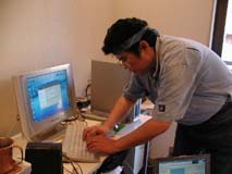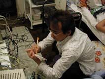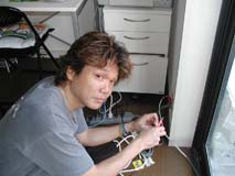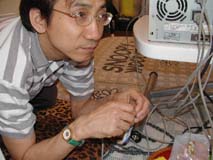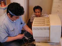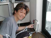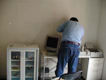 親方登場ぉ〜♪ 朝早く遠方から有難うございます。 今日1日宜しくお願いしまぁ〜すぅ♪ 早速、パソ子の取り外し作業開始! |