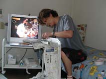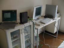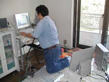 プリ子を早速仮設置し 親方のパソコンと繋いで まずは電話回線の確認? ねぇ〜マニュアル見ないで なんで出来るのぉ〜っ??? |