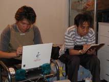 二人ともいつになく真剣・・ どうやらスケジュールを 確認しているらしい。 今年中にまたでっかいステージに 立つこと出来るのかなっ? 神のみぞ知るぅ〜? |