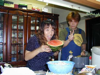 | 私はさぁ〜! 座ってタバコ吸ってるのが一番好きなのよ! 初スイカ持って来たからいいでしょ! |