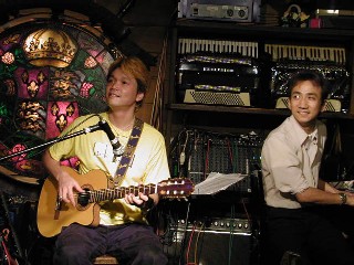 そう、あきちゃんは いつも壁を見ながら演奏してるから MCの時じゃないと 正面向いた顔が撮れないのよぉ〜! |
