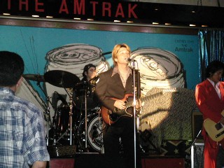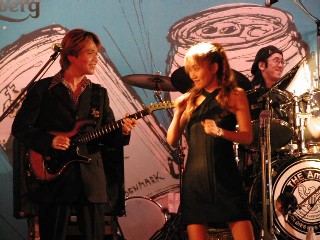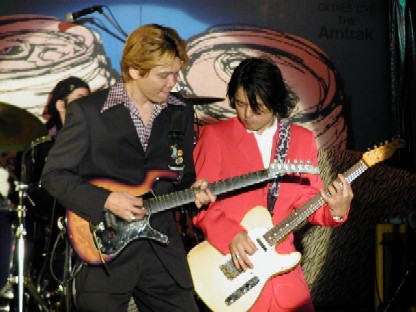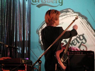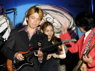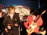 張り切り過ぎたら弦切れちゃったぁ〜! でも弦を代えるのなんて ステージ中だって・・おちゃのこさいさい!? |
