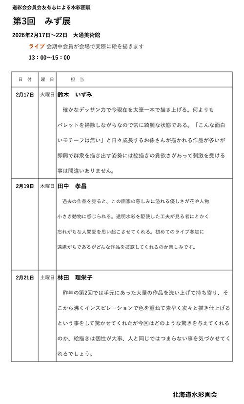 ▼ 第3回 みず展 道彩会会員・会友 有志による展覧会