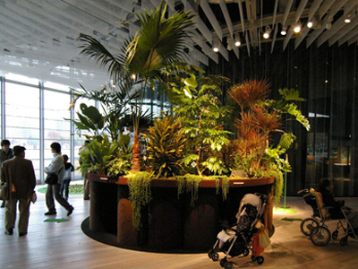 付け加えると、室内環境という今回のこの会場内で、この装置の中では、観葉植物と言われる南方系の植物、とりわけ形や色に特別特徴的な植物を多く置いている。これは、公園という日常生活の延長上にありながらちょっとした逃避環境となっているポジションを際だたせる意図と、公園が世界的に普遍的なシステムであるということを表わすためのものである。