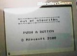 WonderWitch の持つテキスト機能を存分に生かしたピコピコゲームです。 画面上を敵とターゲットが動き回っている中、敵をうまく避けて ターゲットをつかまえるという内容です。 敵とターゲットはまったく同じ姿形をしており、見分けがつきません。 しかし、よくよく見れば、その挙動が微妙(?)に違っていることに 気付く筈です。例えば、敵は自分を追ってくるのにターゲットは逆に 自分から逃げていくとか・・・。