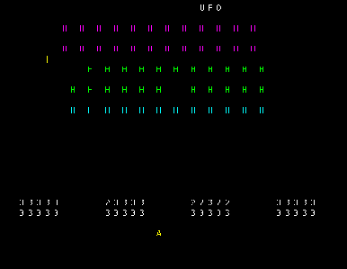 インベーダーゲームです。[j][l]で移動、[k]で止まります。