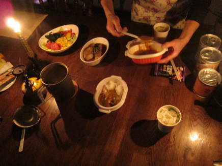 あの日を忘れないために毎年、ろうそくの灯りで非常食を食べる。