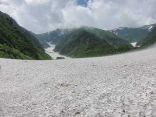 午後は猛暑に苦労し・・・ 雪で顔を冷やしたら気持いい。