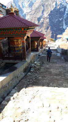 ティンボチェまでの登りは凍った登山道が解け始め滑って大変でした。