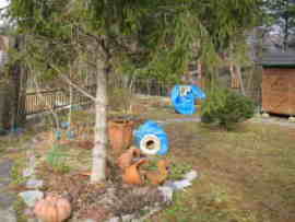 土留め側が10cmほど、地盤沈下しリビングカが傾斜した。(テーブルが傾斜して見える/震度6強で・・・ 石像・台座は転倒した)