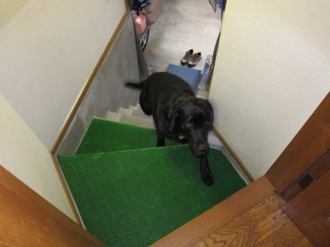 登山で夜に山小屋の外に出ると黒ラブのmonetは、暗闇では、どこに居るか
