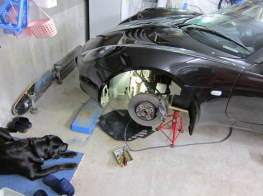 塗装中も防腐剤入り塗料が付かないように庭でお昼、休憩の時、見に来る。
