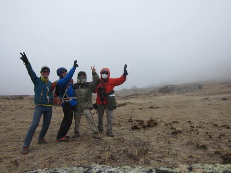 左から、追いかけて登ってきたガイドのMr,Ishihara、私、ジビーさん、Mr,ABE