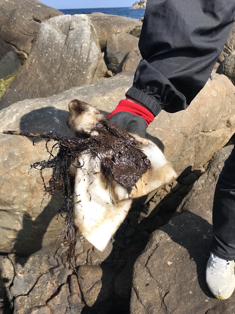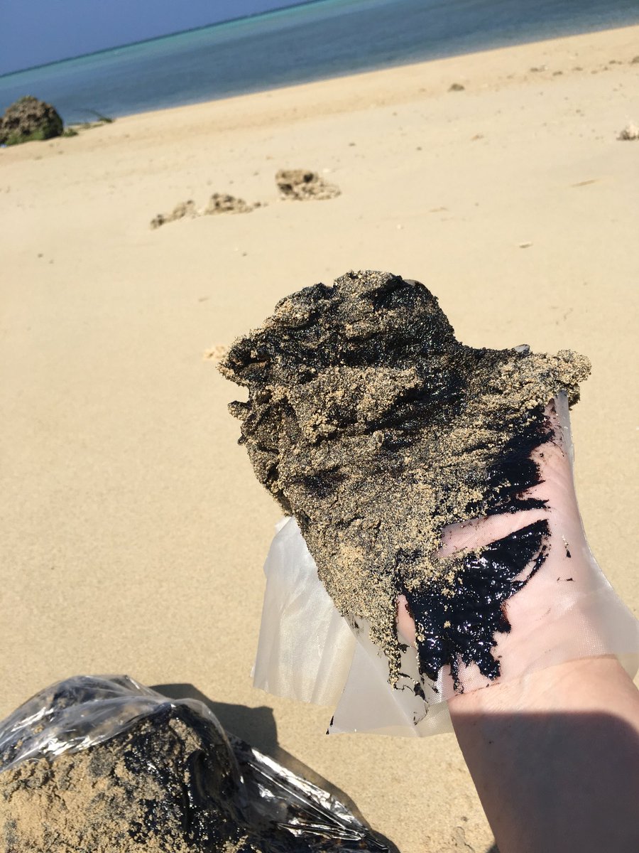 徳之島の現状。ムシロ瀬に大量の重油が漂着しています。今日は1日回収作業、わたしは午後から参加してきました。ムシロ瀬の地形的に回収がとても難しい… 重油の処理は特殊な方法で行う必要があるのでむやみやたらにできる作業ではありませんが、これからは定期的に回収作業にあたりたいと思います。pic.twitter.com/gyzH88V30F