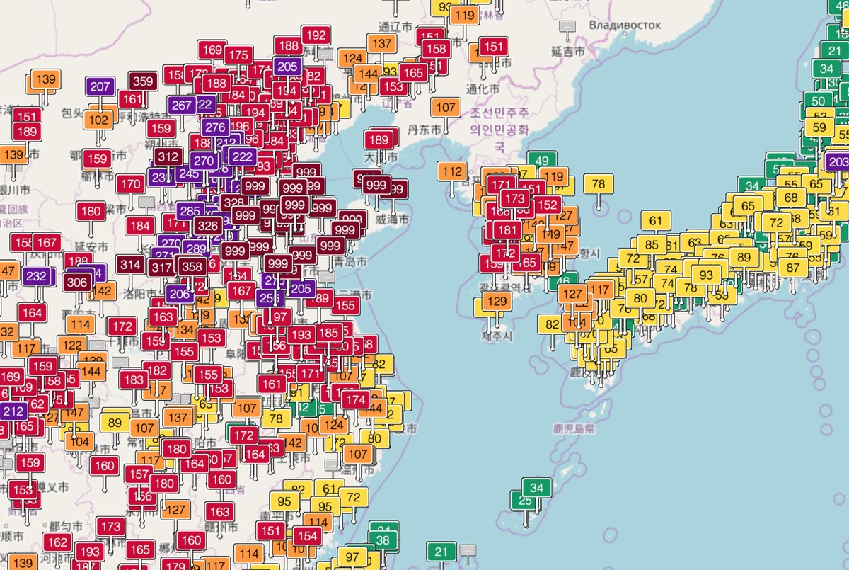 20日ぐらい AQIが 999(MAX)の地域が中国にあります。 ここまで大気汚染が酷くなってしまった…。pic.twitter.com/czHYQFmQBe