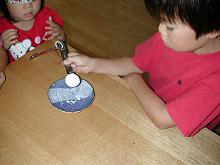 おさらにもってできあがり。 食べてみたらおいしかった。 ちょっとむずかしかったけどおもしろかった。 |